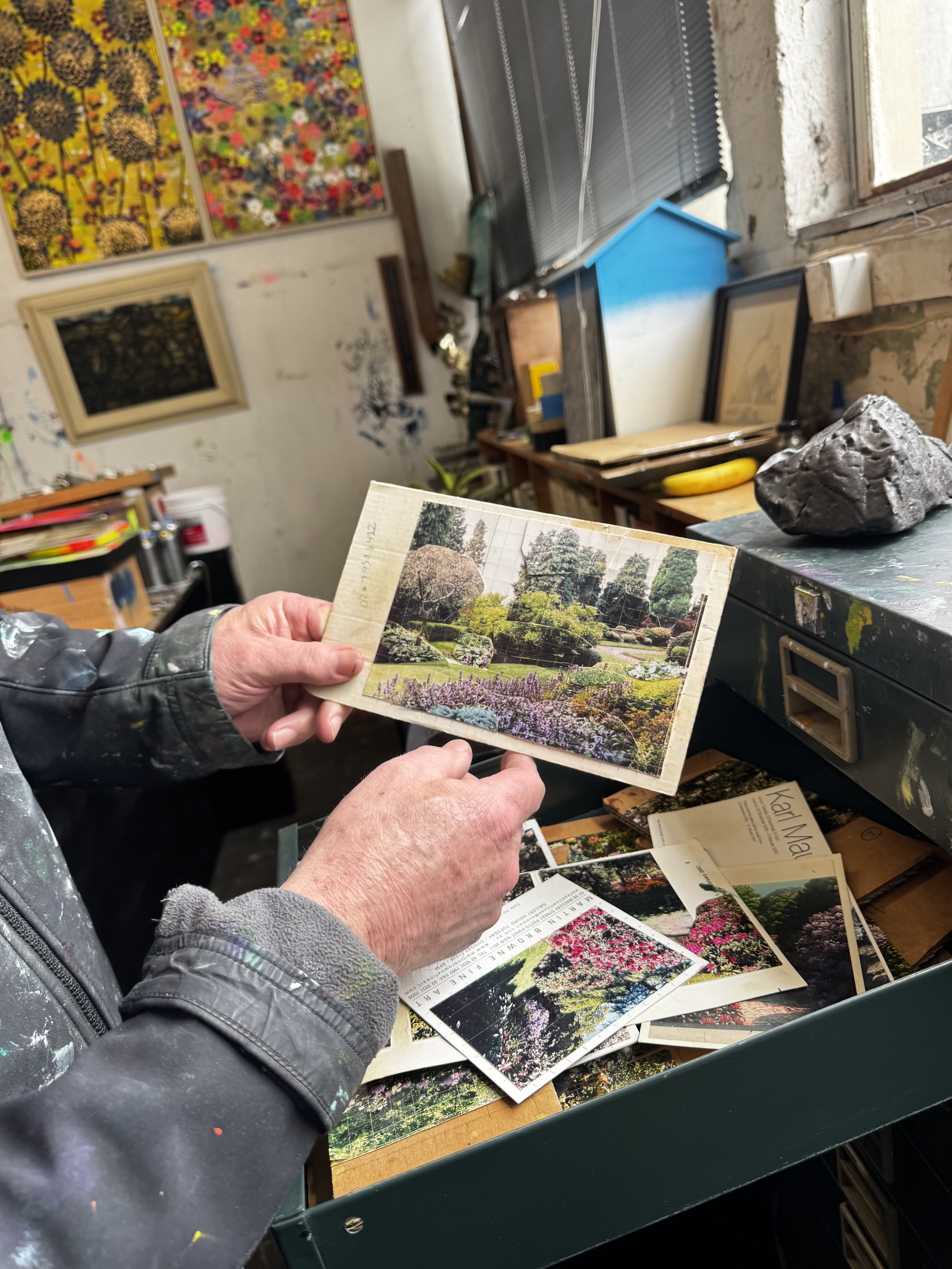 Toni MacKinnon: Recently you’ve talked about how, as the basis for your paintings, you ‘jigsaw’ photographs together — adhering less rigidly to what is in the photograph. In some ways that method of constructing mirrors the way gardens are built. What do you see as the connection between creating gardens in paint and in the real?