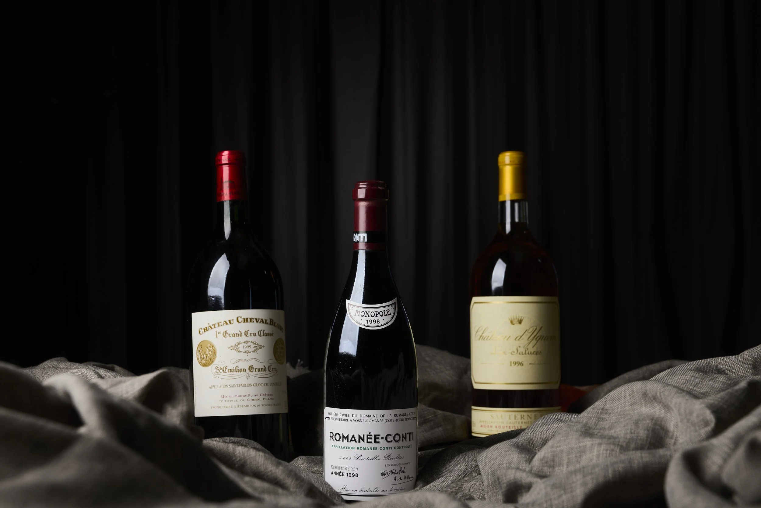 Beyond Bordeaux, Burgundy is superbly represented, including wines from Domaine de la Romanée-Conti, whose mythical vineyards have long captivated collectors.