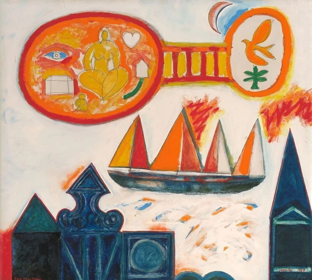 Our cover image, Pat Hanly’s Protective Helmet (1962), exemplifies this cultured outlook. Created while Hanly was working in Europe alongside British and American contemporaries including David Hockney, R. B. Kitaj and Peter Blake, the work’s ‘Bacon-esque’ qualities respond to Cold War tensions. Sir Miles' long-standing relationship with Hanly is evident throughout his collection and in the mural integrated into the Christchurch Town Hall.